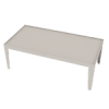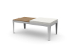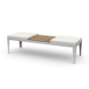 Two upholstered seat cushions and one table top available in center or end position