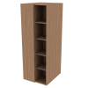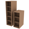 10.875"w open shelves with three adjustable 1" thick shelves with beveled edge and two fixed shelf each side